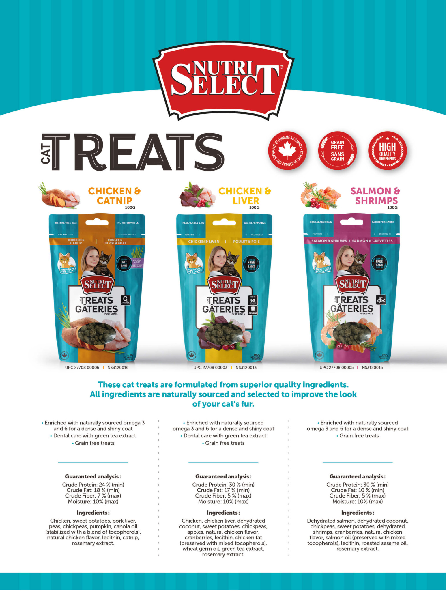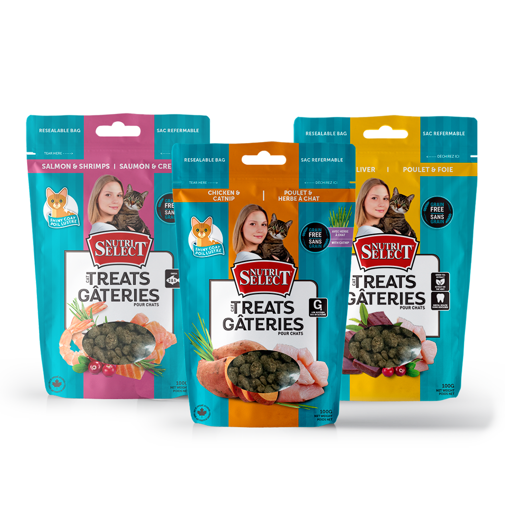 NutriSelect products are treats and canned products for your pets. All products are without animal by-products. Animal by-products are considered by leading specialists as harmful to animals as they may contain ingredients of very poor quality. Plus, NutriSelect products are made from different proteins, such as lamb, chicken and fish for your dog. For cats, we have recipes made of chicken and fish.