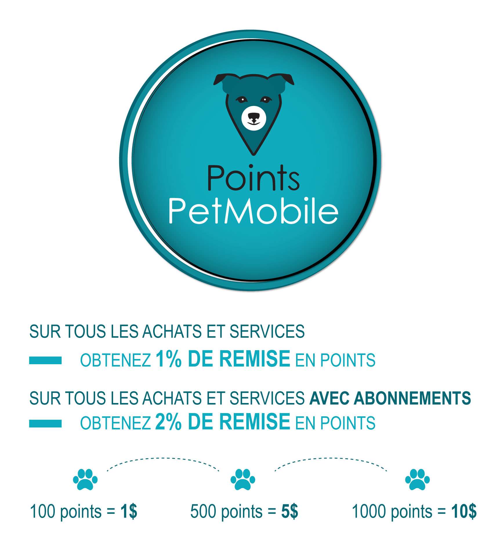 Il vous suffit de créer un compte client sur PetMobile.ca, ensuite pour chaque achats effectuer, accumulé automatiquement des points PetMobile qui vous permettront de payer moins cher sur vos achats.