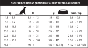 Nourrir votre animal en suivant le tableau des rations quotidiennes. De l’eau fraîche doit toujours être disponible.