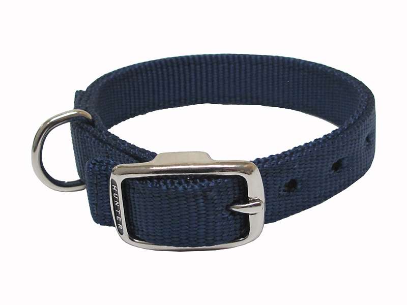 Practical, affordable and durable, this is one of many high quality collars made in Montreal by Hunter Brand. Made out of flat or doubled nylon, this classic model is available in two colors. A metal buckle and a ''D'' ring allow for quick adjustment and solid attachment.